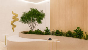 A recepção, longe de ser impessoal e genérica, foi projetada para proporcionar uma experiência agradável desde a entrada, com foco no bem-estar dos pacientes. Utilizamos iluminação aconchegante e elementos biofílicos para trazer vida e tranquilidade ao ambiente. Nosso objetivo era proporcionar impacto de forma leve e humanizada, destacando vegetações preservadas para um toque natural que a clínica necessitava, garantindo conforto e acolhimento desde o primeiro momento. Além disso, o lavabo também foi projetado com Biofilia e sensorialidade, que surpreende e acolhe através de materiais aconchegantes e iluminação indireta.